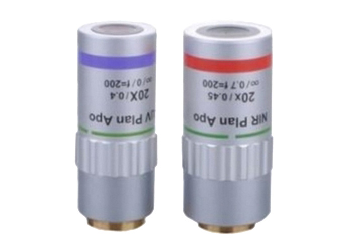 | HY-20X | 20X NIR超長(zhǎng)工作距物鏡 | 20X平場(chǎng)復(fù)消色差物鏡,工作距離30.8mm,焦距長(zhǎng)10mm,數(shù)值孔徑0.29,景深3.5μm,視場(chǎng)?1.2mm(?24目鏡),分辨率1μm,波段400nm~1200nm |