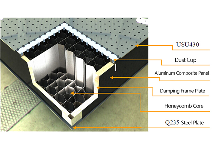 蜂窩結(jié)構(gòu)隔振臺板,能提高實驗的精度、提供堅固安裝的作用,其結(jié)構(gòu)為蜂窩空心結(jié)構(gòu),包括上下面板、隔離杯和蜂窩狀芯板;便于實驗附件的固定安裝,面板采用高導(dǎo)磁不銹鋼(430),表面不生銹,保證了實驗室清潔度;可防止噪音在內(nèi)部產(chǎn)生震蕩給實驗造成誤差,同時能防塵、防水、防止小物品墜落到內(nèi)部,便于清理;內(nèi)部蜂窩狀芯板采用的是梯形薄鋼板相互対粘中間并夾有鋼板形成的像蜂巢形狀的結(jié)構(gòu),它能在降低芯板質(zhì)量的情況下使剛度變好。